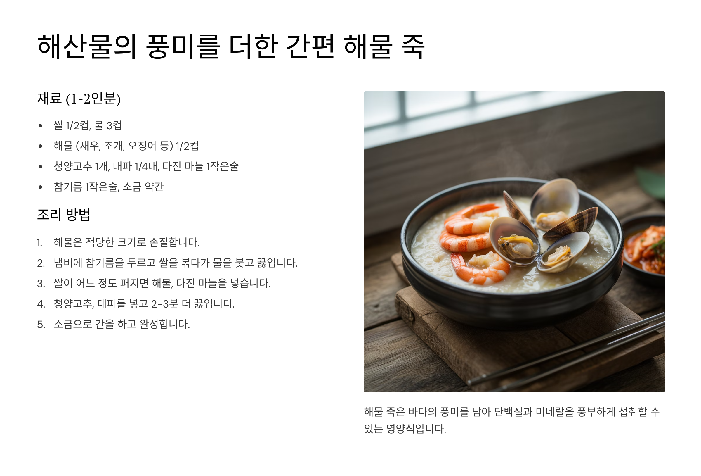해산물의 풍미를 더한 간편 해물 죽