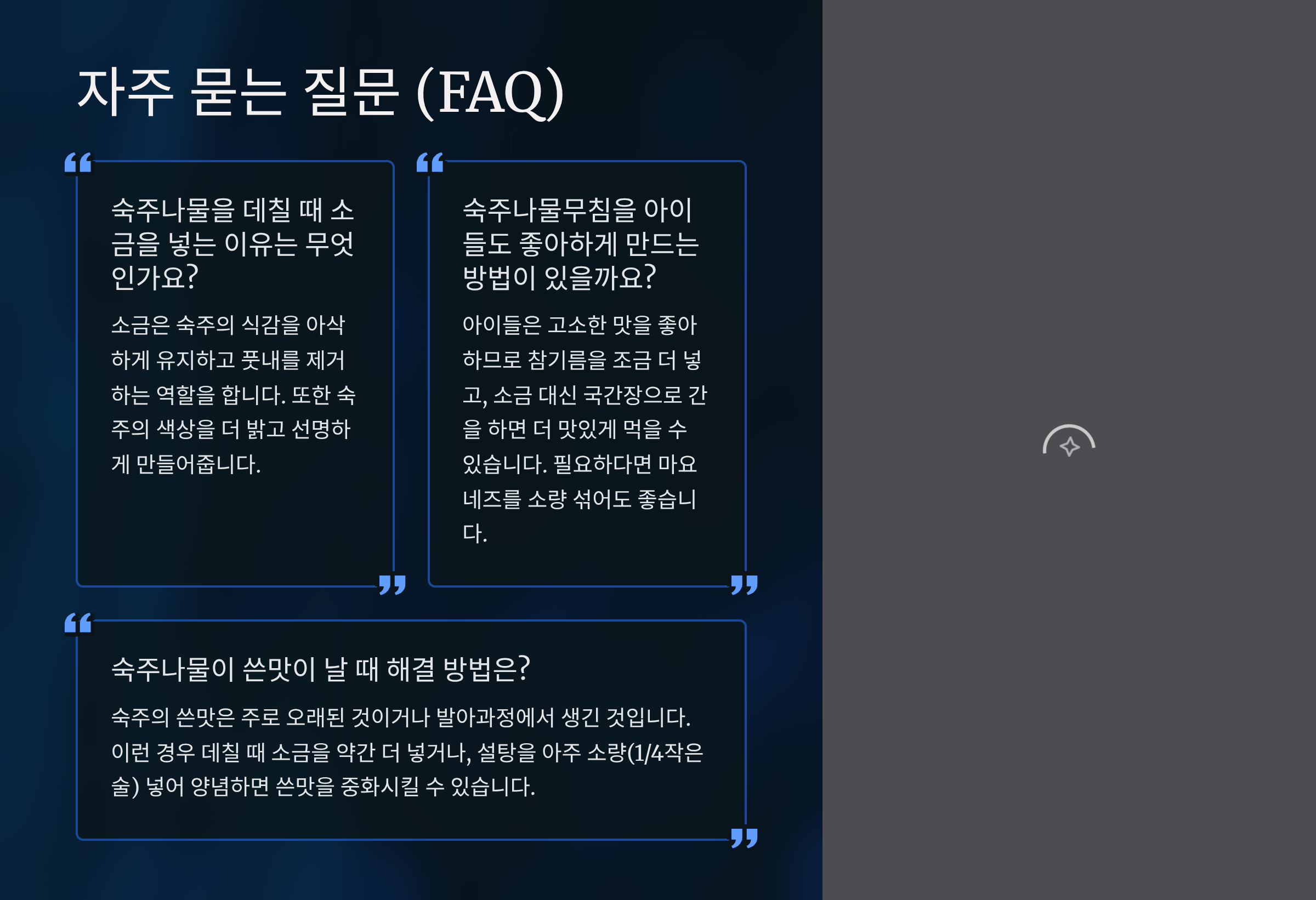 Q8. 숙주나물 데칠 때 소금은 왜 넣나요?