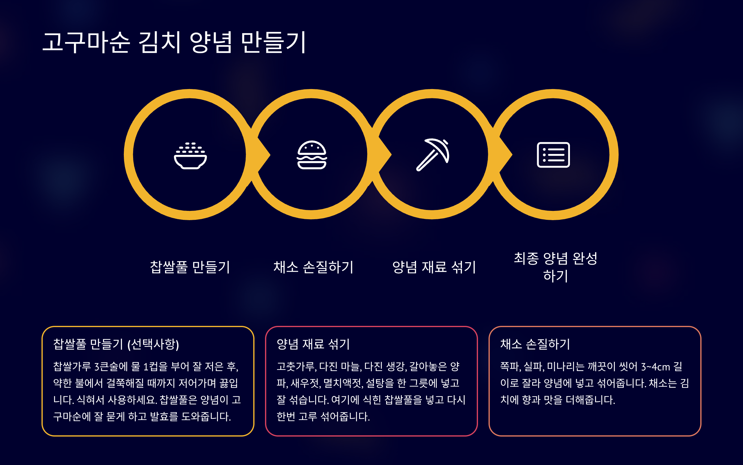 | 양념 재료 | 역할 | 비고 |