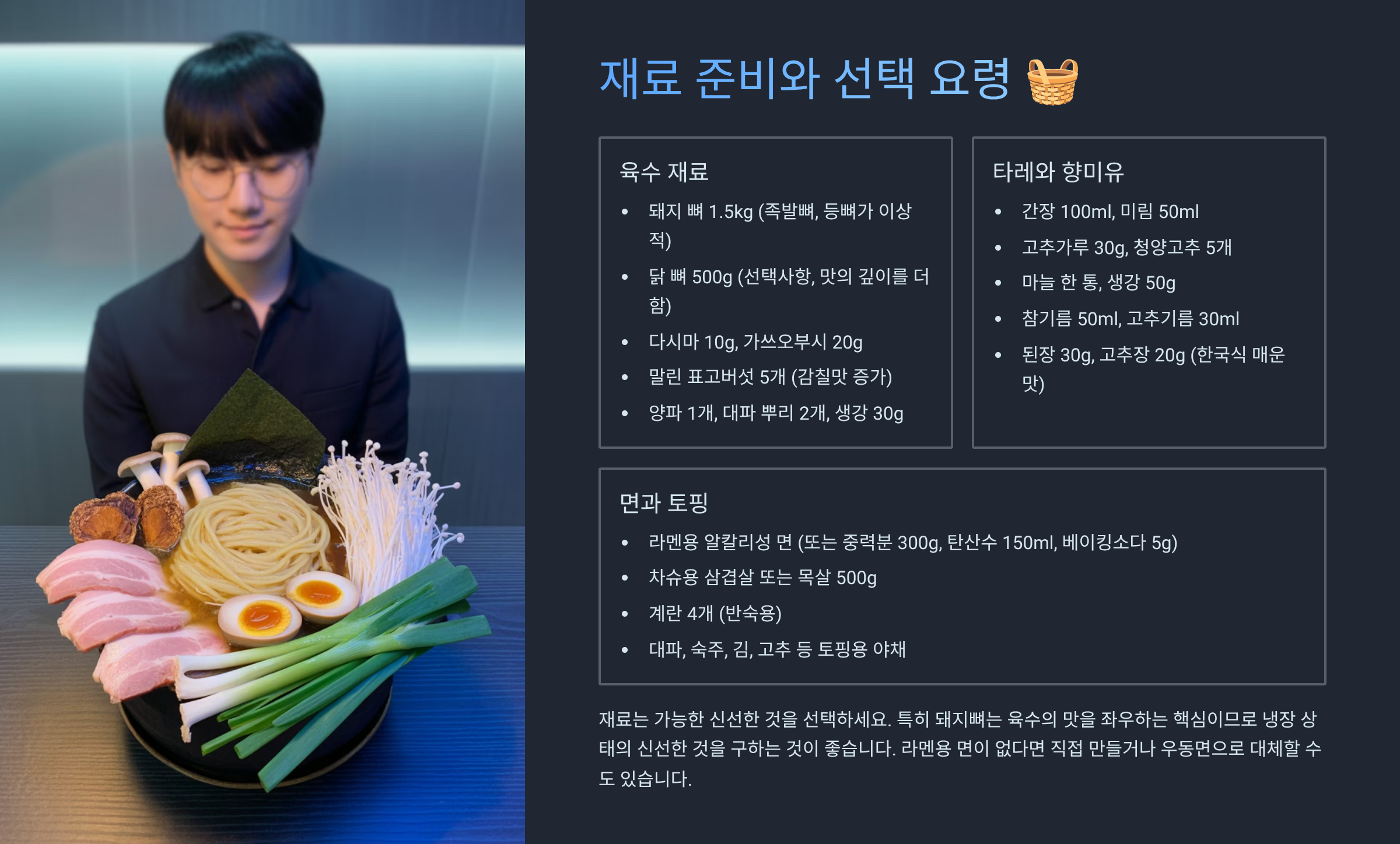 진한 돈코츠 베이스에 매운 타레를 더한 한 그릇은 집에서도 충분히 구현 가능해요. 뼈 손질, 유화된 육수, 캡사이신 밸런스, 향미유까지 단계별로 안내할게요.