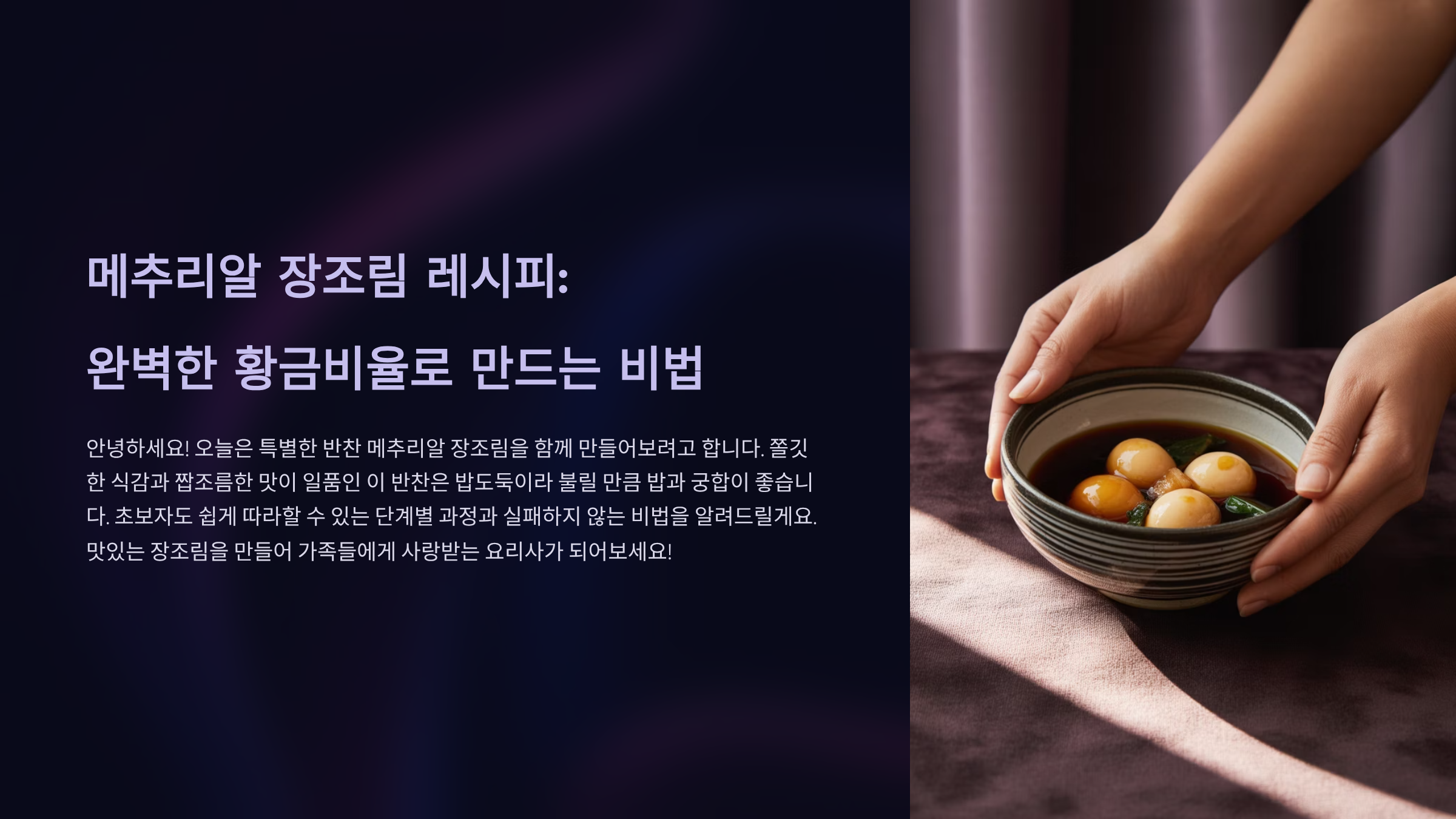 메추리알 장조림은 남녀노소 누구나 좋아하는 국민 밑반찬입니다. 특유의 쫄깃한 식감과 달콤 짭짤한 맛은 밥도둑이라는 별명이 아깝지 않을 정도입니다. 하지만 집에서 직접 만들려고 하면 메추리알 껍질 까는 것부터 시작해, 양념장 비율을 맞추는 것이 은근히 어렵게 느껴질 수 있습니다. 특히, 간이 너무 짜거나 싱거워 실패하는 경우도 많아 자신감을 잃기 쉽습니다.