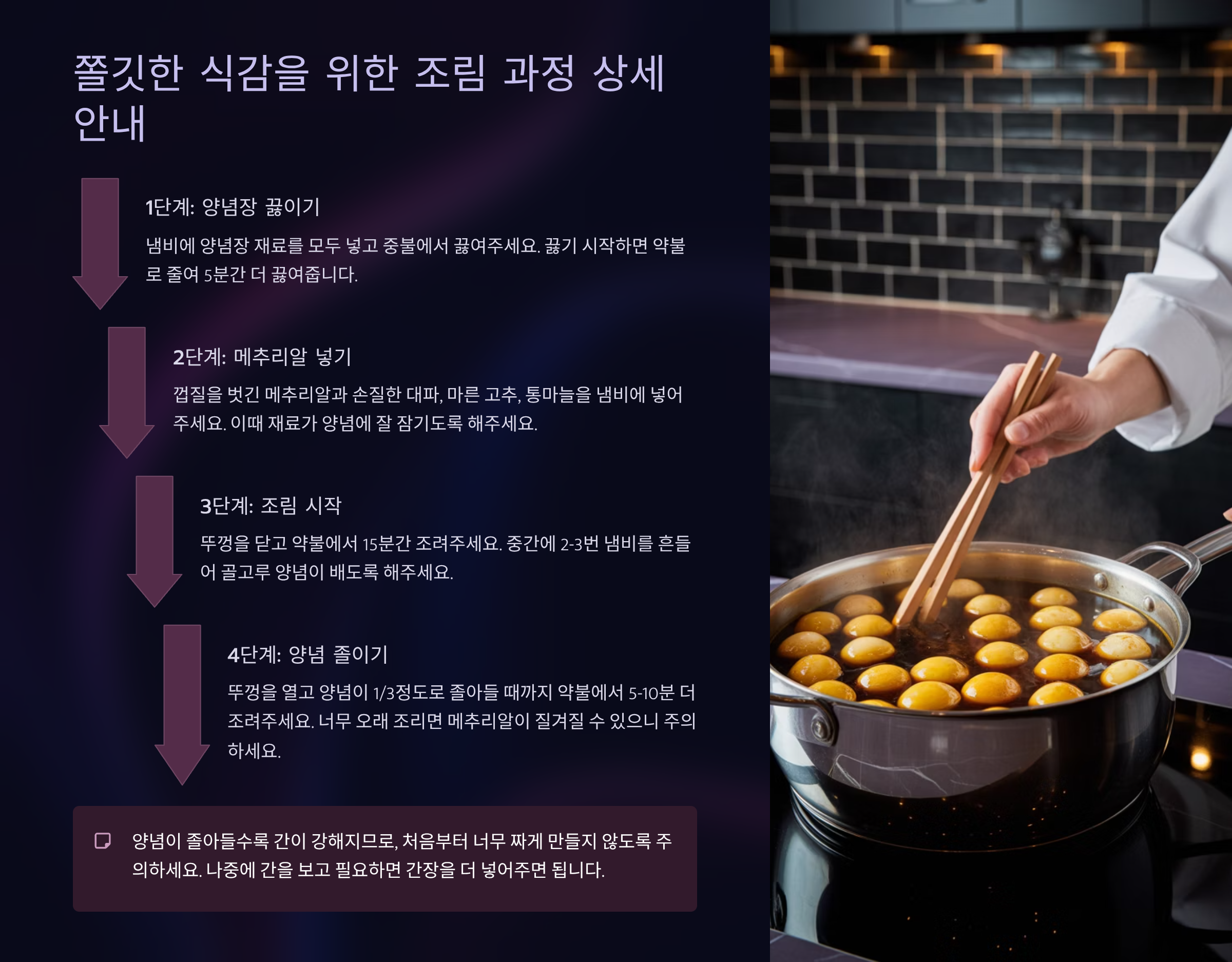 쫄깃한 식감을 위한 조림 과정 상세 안내