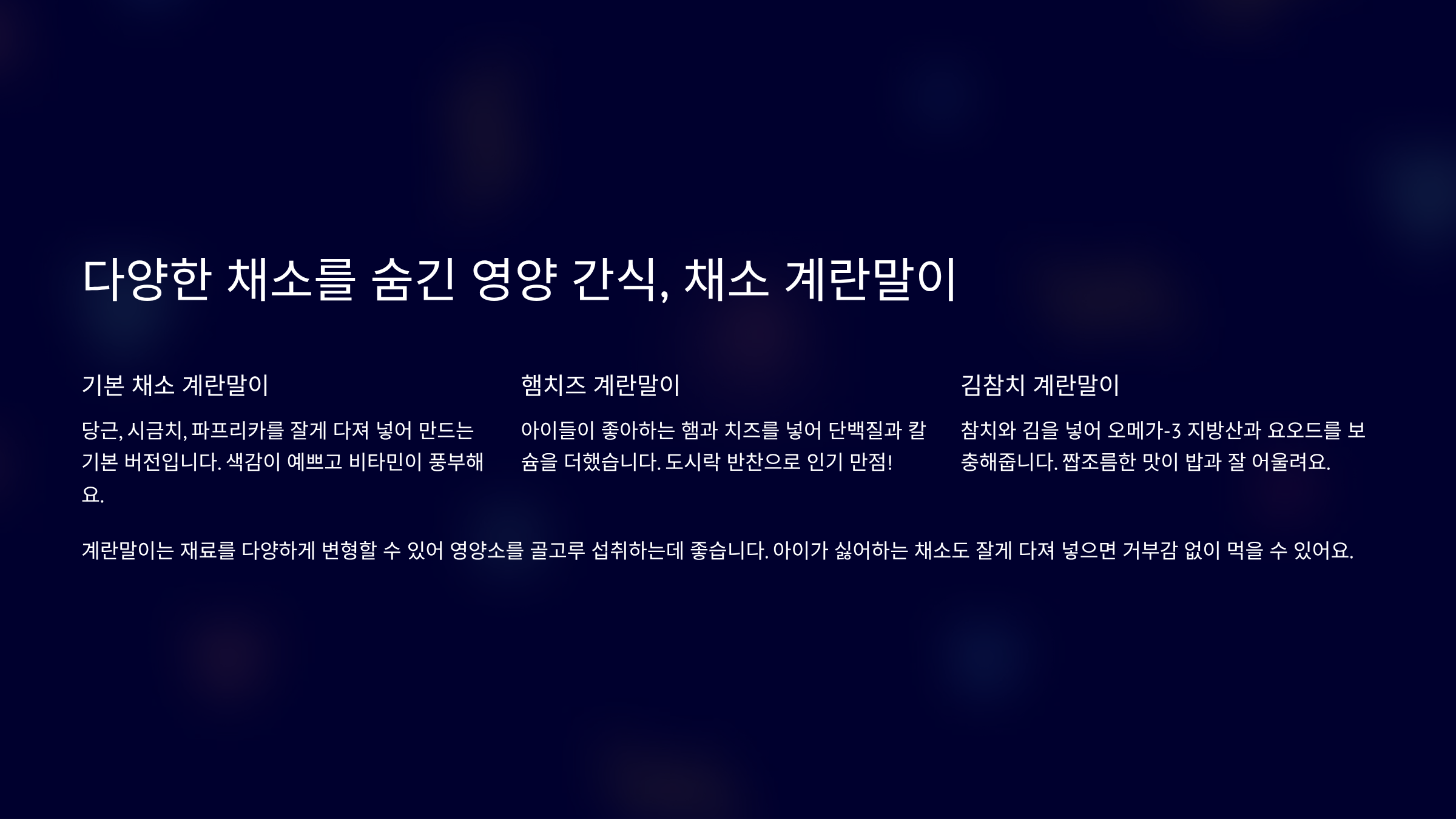 어린이 반찬으로 좋은 계란 요리: 영양과 맛을 잡는 레시피