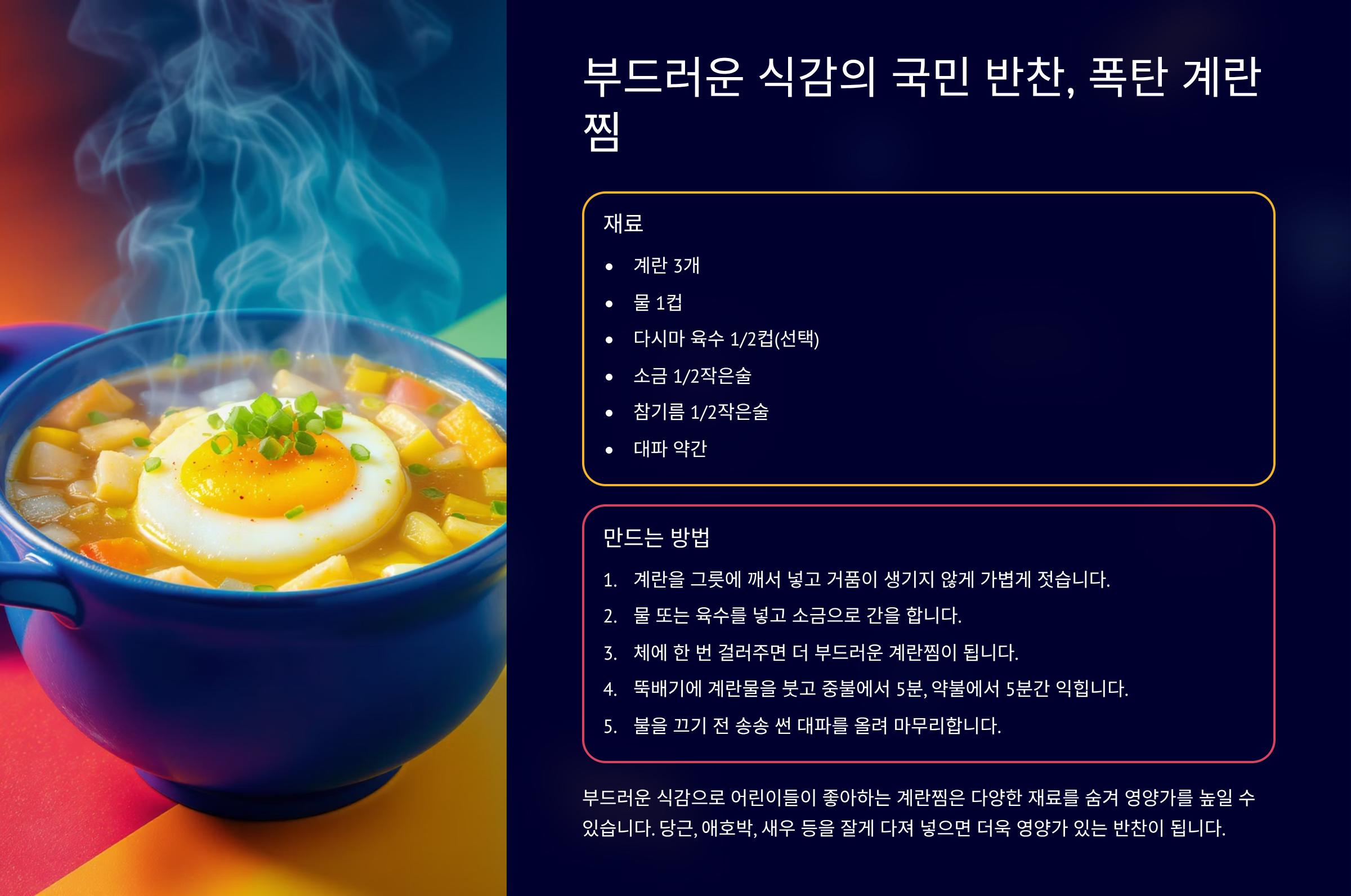 레시피 보기2. 부드러운 식감의 국민 반찬, 폭탄 계란찜