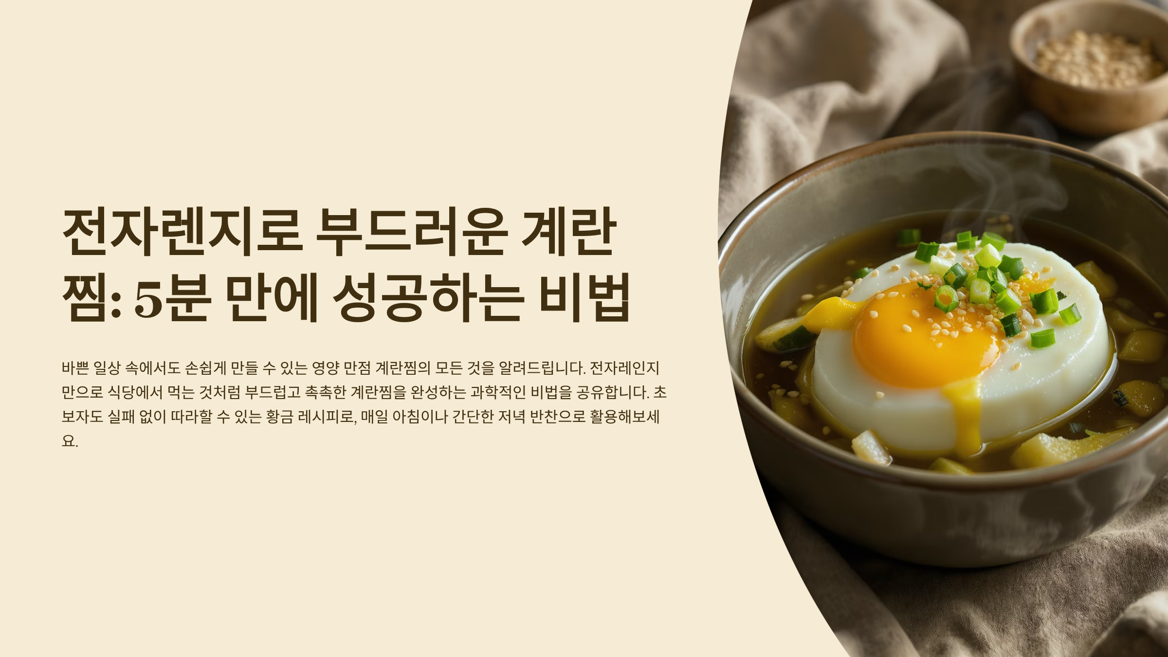 계란찜은 남녀노소 누구나 좋아하는 국민 반찬입니다. 하지만 뚝배기에 끓이면 자칫 태우거나 찜기에서 찌는 과정이 번거로워 자주 해 먹기 망설여지기도 합니다. 이럴 때 전자레인지를 활용하면 단 5분 만에 뚝배기에서 끓인 것처럼 부드럽고 촉촉한 계란찜을 만들 수 있습니다. 바쁜 아침 식사나 간단한 술안주, 아이들 영양 간식으로도 손색없는 전자레인지 계란찜의 모든 것을 알려드립니다. 이 글에서는 실패 없이 성공할 수 있는 황금 비율과 꿀팁을 상세히 소개합니다.