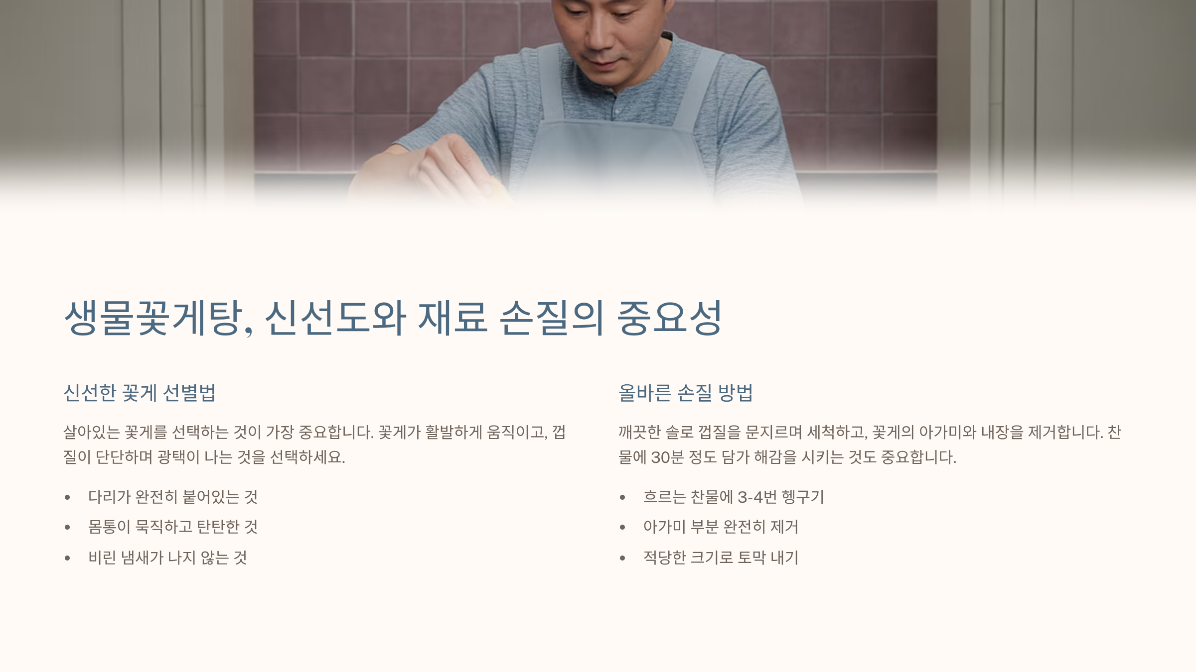 생물꽃게탕, 신선도와 재료 손질의 중요성 🦀