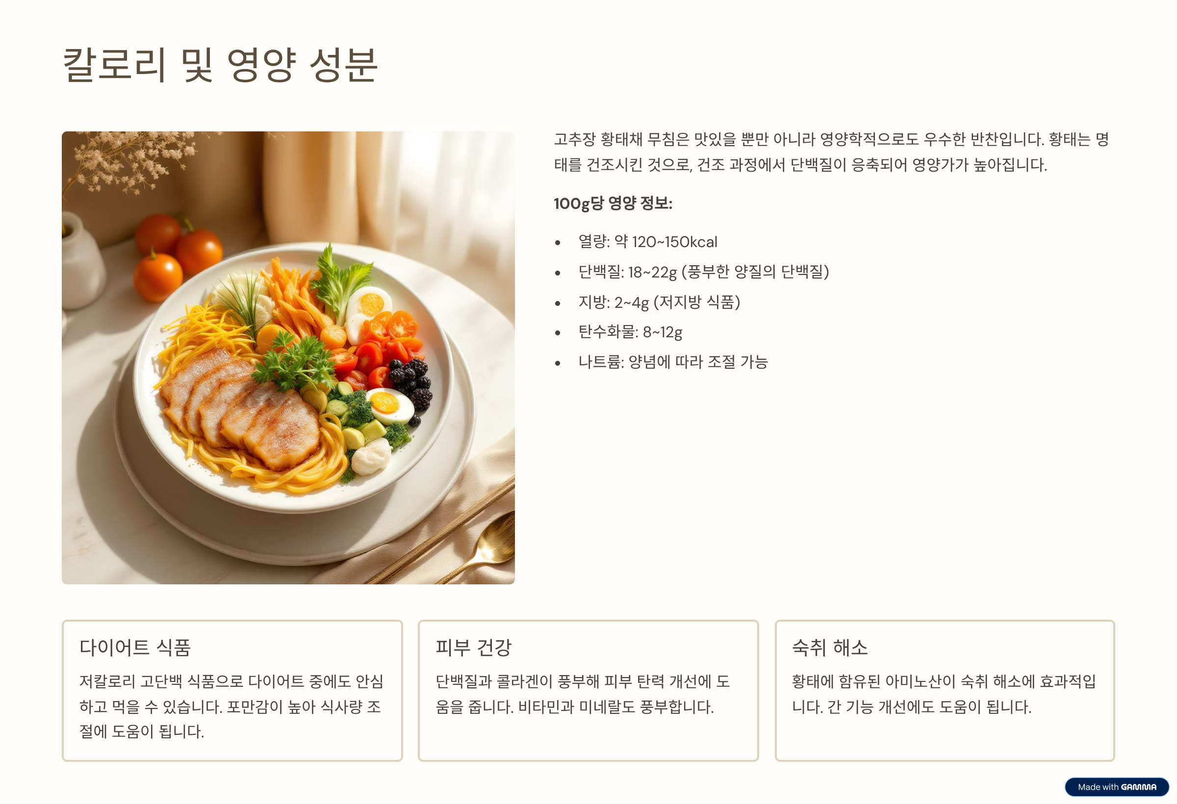 6. 황태채 무침 칼로리 및 영양 성분 분석 🔬